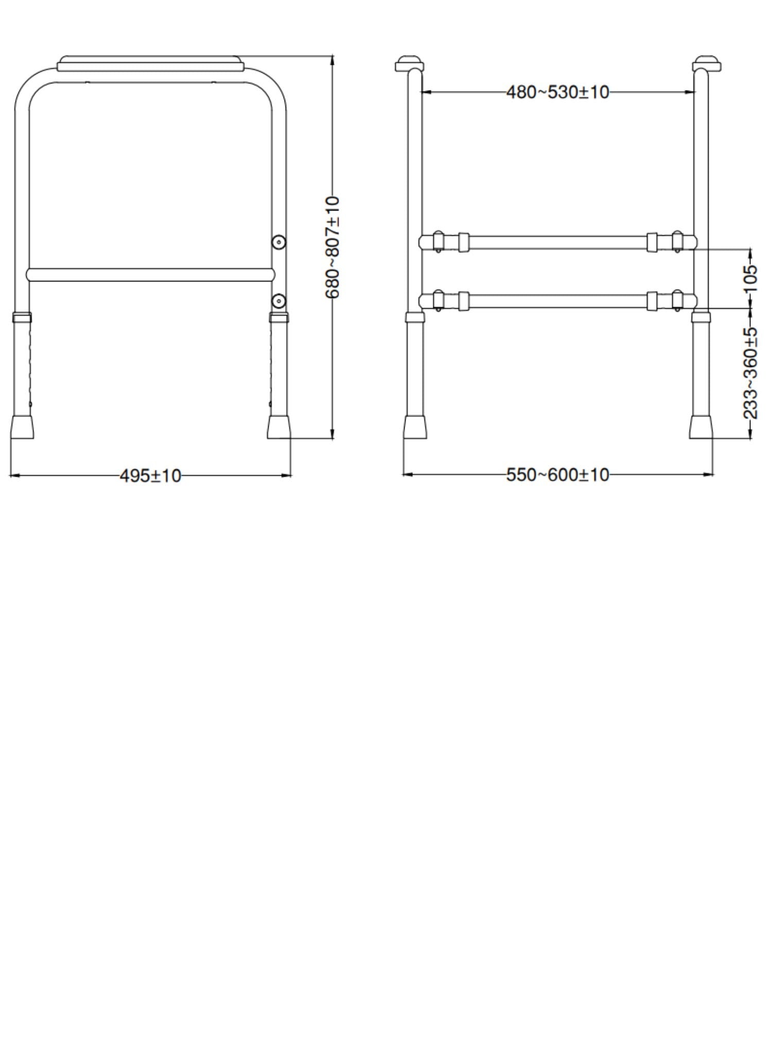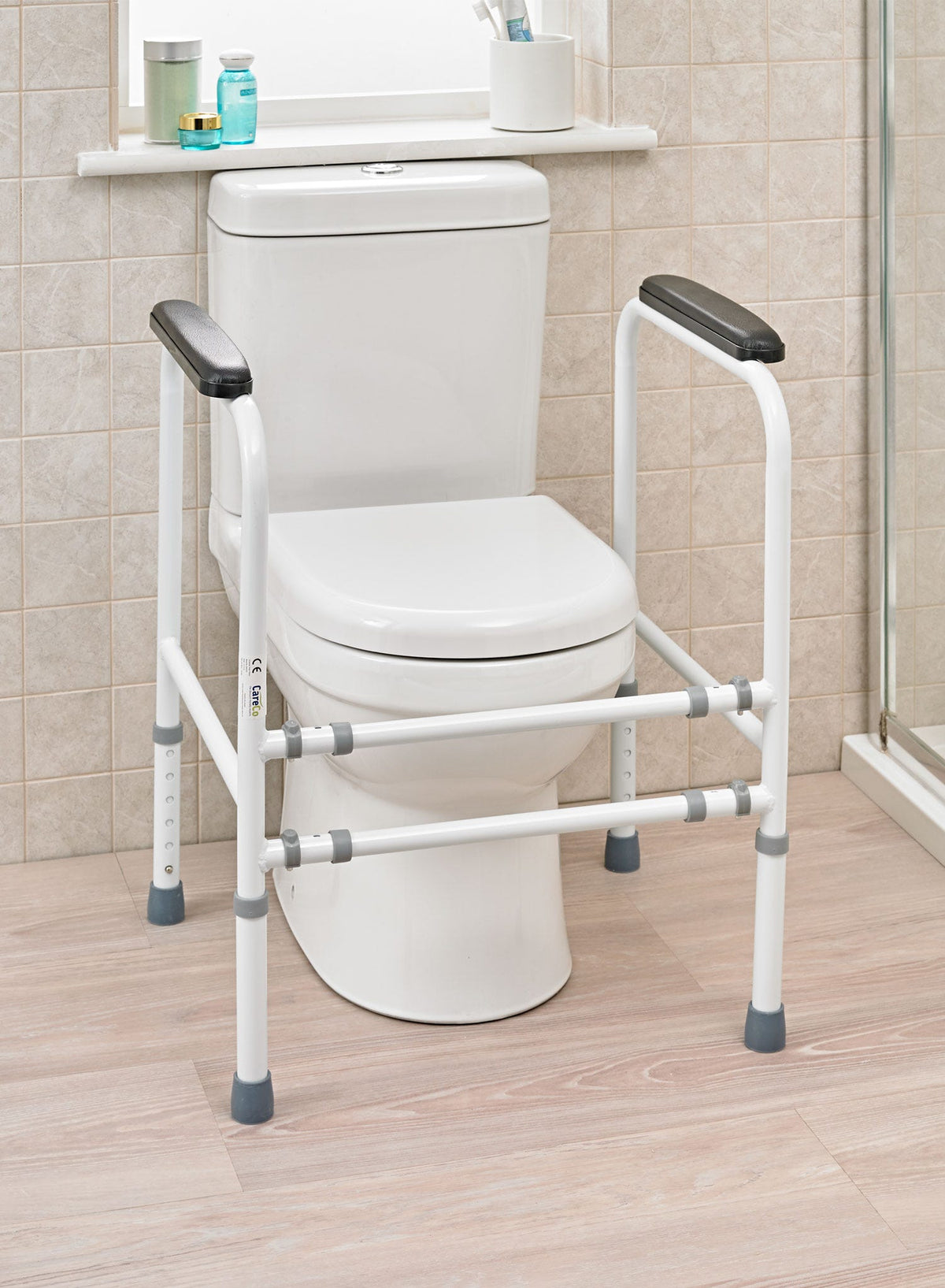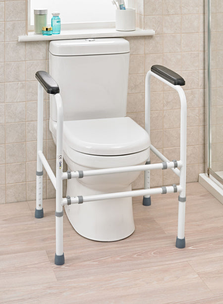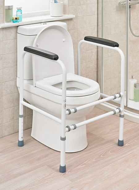 The Universal Toilet Frame provides reassuring horizontal support to make trips to the bathroom easier and safer.